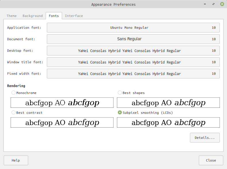 在这里面可以设置应用字体,文档字体,桌面字体,窗口标题字体等等。