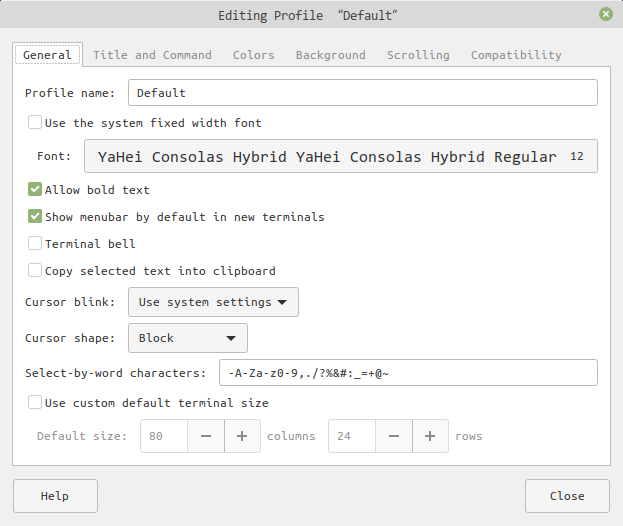 由于刚刚安装的 Linux mint 终端中的中文字体显示为楷体,但是这个楷体在终端中显示有些问题:字与字之间空隙很大。所以就打算换一款字体。