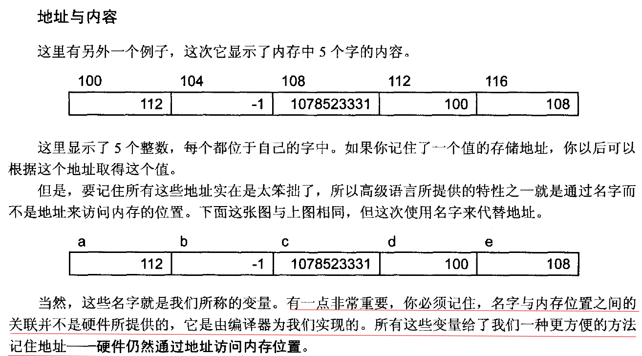 变量给了我们更方便的方法记住地址,但是硬件仍然通过地址访问内存位置。