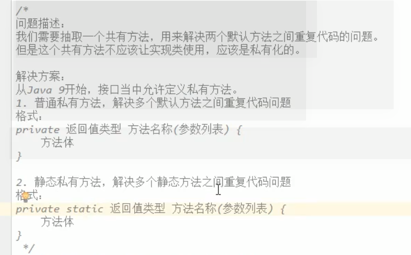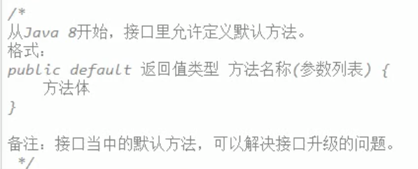- 多个父接口中的默认方法如果重复,子接口必须进行默认方法的覆盖重写。(default不能省去)
