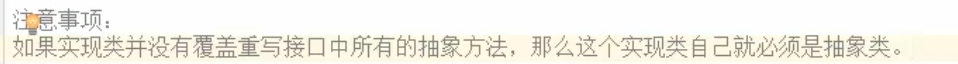 如果实现类没有覆盖重写所有接口中的所有抽象方法,那么实现类必须是抽象类。