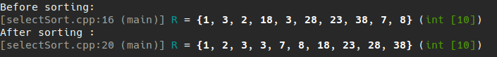 void selectSort(int R[], int n)