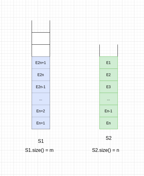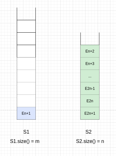 - 队列中元素 En+2 到 E2n+1 出队,对应栈 S2 出栈所有元素