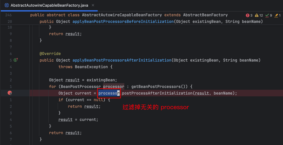 IDEA debug 查看当前 BeanPostProcessor 类型的变量 pp 是否为 InfrastructureAdvisorAutoProxyCreator,断点语句应该怎么写?