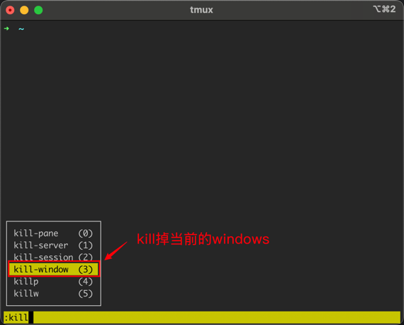 | 关闭会话 | tmux kill-session -t 会话名 |
