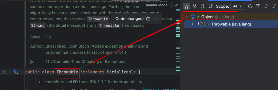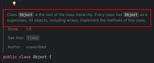 今天看到org.springframework.beans.factory.ObjectFactory#getObject抛出的org. springframework.beans.BeansException,我一直往上找到Throwable ,往右侧看父类和子类的结构时,发现这个类代码中并没有去写继承Object,但是右侧层次结构中却有Object